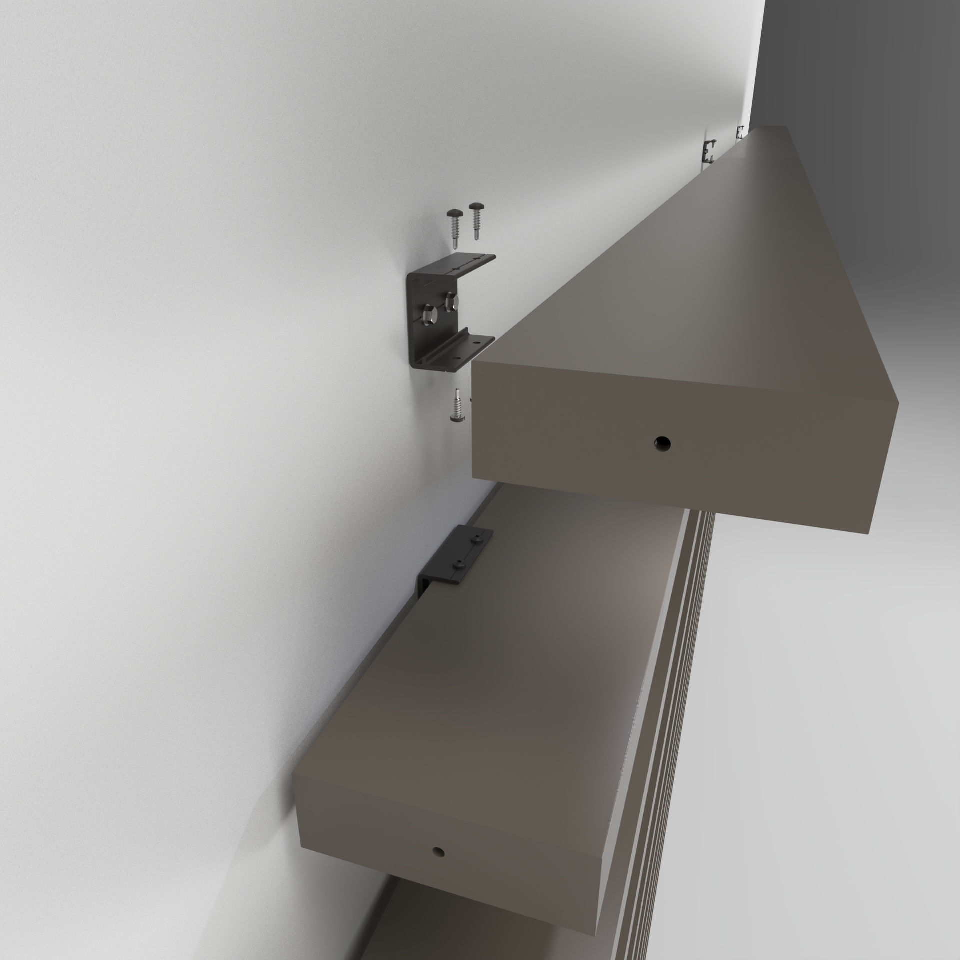 Conçue en aluminium 6063-T6 avec une finition RAL 7022 mat, cette attache est compatible avec les lattes de 1 po, 1 ½ po et 2 po. Elle offre une solution de fixation polyvalente pour vos installations murales, au sol ou au plafond.