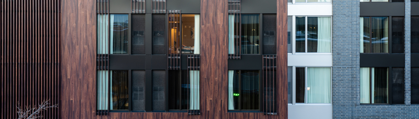 Les lattes d’aluminium Maibec Architectural s’intègrent parfaitement aux projets des secteurs commercial, industriel et institutionnel.